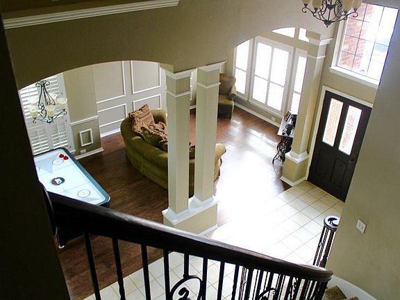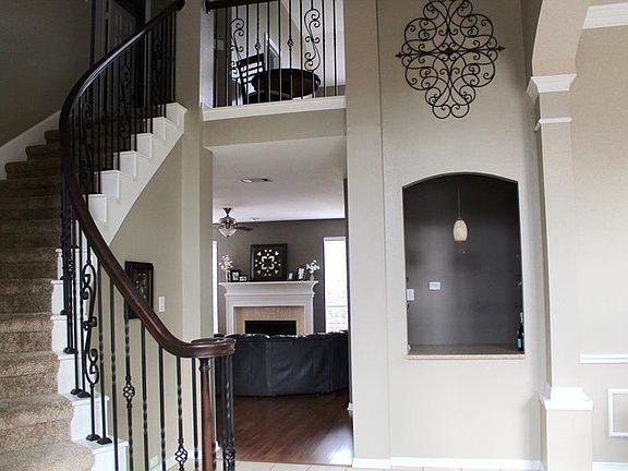 Beautiful Home in Meadow Ridge with new carpet, flooring, fence, SS appliances, plantation shutters and paint. Double door entry leads to dramatic foyer, curved rod iron staircase and formal dining-living combo, high ceilings, two bedrooms up with jack and jill bathroom, 2 bedrooms on main level.
