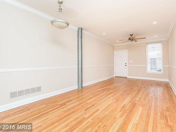 Beautiful 4 BR in the heart of Federal Hill! Great location, one block up from many restaurants and bars and a few blocks from the Inner Harbor! Hardwood floors throughout the home and a very modern style with open stairwells. There is a parking pad in the back and two decks- one off a second floor bedroom and one on the roof located off the 3rd floor hallway. Main floor has a large living and dining area, kitchen, and half bath, with storage space in the unfinished basement. Both upper levels each have 2 large bedrooms with a shared hallway bathroom.