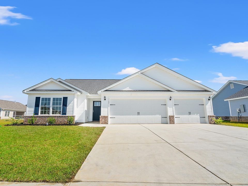 Move in ready home! Woodside Crossing is proud to offer the Sewee floor plan! This 3 car garage home sits on a spacious wooded lot where you will enjoy 3 bedrooms all on one level and a light and bright kitchen, dining area, and family room that incorporates an open design. Enjoy the coastal breezes and peace and quiet of the area on your covered back porch. Other features and benefits of this home include our Natural Gas package consisting of a Tankless Hot water Heater, Gas Range, and Gas Heating! Designer kitchen featuring stainless Steel appliances, profiled Aristokraft™ Shaker style Cabinets with upgraded hardware, granite countertop package with polished stainless steel sink, durable waterproof laminate flooring in living areas with stain resistant carpet in bedrooms, interior trim package includes window casings and stool for durability and appeal, relaxing baths with cultured marble countertops with integral bowl; executive height vanities in all bathrooms; elongated toilets; contoured fiberglass shower and tub units, maintenance free exterior features such as premium vinyl siding, soffits and fascia; and high performance GAF™ Architectural shingles. Woodside Crossing is located on Four Mile Rd just 10 minutes to downtown Conway and minutes from Hwy 22 with quick access to Myrtle Beach, Little River, North Myrtle Beach, etc. Building lifestyles for over 40 years, we remain the premier home builder along the Grand Strand. We’re proud to be the 2021, 2022, 2023, and 2024 winners of both WMBF News' and The Sun News Best Home Builder award, 2023 and 2024 winners of the Myrtle Beach Herald's Best Residential Real Estate Developer award, and 2024 winners of The Horry Independent’s Best Residential Real Estate Developer and Best New Home Builder award. Pictures, photos, colors, and layouts are for illustration purposes only and can vary from home to home. Customization may be possible – call listing agent for availability. Square footages are approximate.