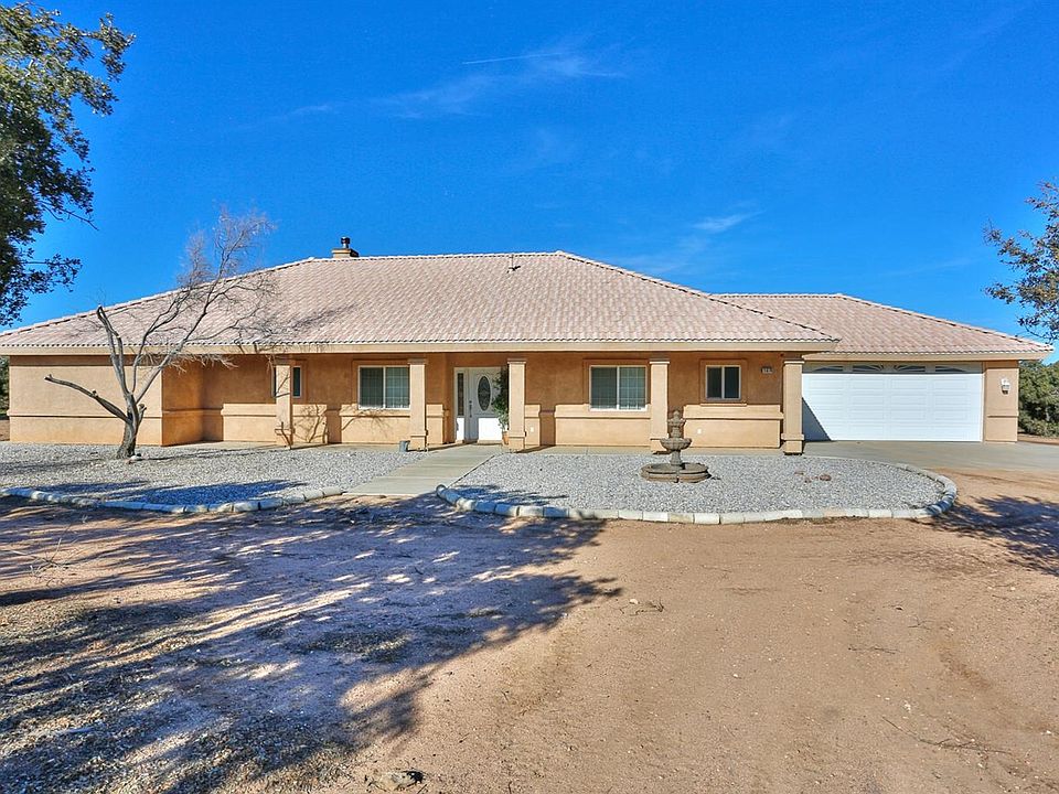 Beautiful spacious Oak Hills home on 2 acres. 4 bedroom 2.50 bath with a jacuzzi and pool just outback. Built in BBQ. This home shows pride of ownership and will not last long. For those of you looking for acreage, privacy and the perfect place to raise a family and entertain friends-this is the one.Property includes:ADA toilets,50 gallon water heater, hot water circulator, silestone countertops, the entire house is hot-wired with Cat5 cabling, auto gate, laundry has propane and electric connectors, dual AC and heater with SCE summer savings plan and master has a jacuzzi tub. Buyer to verify all.3 car detached garage w/workshop.Rv parking , 50 AMP RV service in 3 car garage. Lots of concrete.