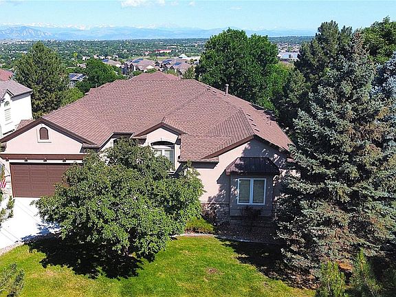 Stunning walk-out ranch with fantastic mountain views in the exclusive gated community of Hilltop in Legacy Ridge West. This elegant home features 5 bedrooms + a large office w/ beautiful built-ins & a professionally finished walk-out basement w/ custom upgrades throughout. Beautiful gourmet kitchen has been updated w/ granite island, tumbled stone backsplash & a professional Viking 36" gas cooktop w/ a 36" Viking custom ventilator/hood. New exterior front door & sidelight. Bright open floorplan, gorgeous hickory flooring throughout main floor living area. Mountain views great you as soon as you enter the front door. Wonderful open concept home w/ a generously sized family room w/ cozy gas fireplace, open to the kitchen & breakfast nook all w/ fantastic Mt. views. Wonderful kitchen w/ a large island & a huge walk-in pantry. The large primary bedroom has a lovely bay window, generously sized walk-in closet & a luxurious, beautifully remodeled 5-piece bath complete w/ dual sinks, a large free-standing soaking tub & newer walk-in shower, providing a spa-like experience at home. The bedrooms are generously sized. Step outside to the covered deck, where you can enjoy jaw dropping mountain views & evening sunsets over the Rockies. The walkout basement is thoughtfully designed w/ a large family room perfect for entertaining w/ a cozy gas fireplace & wet bar with wine cooler, 3 large bedrooms, & a nicely finished storage room & an exercise room that could be used as a second office. The 3 car garage is immaculate w/ finished walls & epoxy floors. New main floor furnace in 2017, 2 new hot water heaters, & new carpet in 2022, new insulated garage doors, new exterior paint, new driveway & sidewalk. Residents of Legacy Ridge have access to wonderful amenities including pools, tennis courts & trails. This home is a gem & offers a convenient, maintenance free lifestyle w/ lawncare & snow removal taken care of by the HOA. OPEN HOUSE SAT 2-4