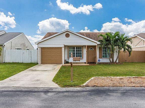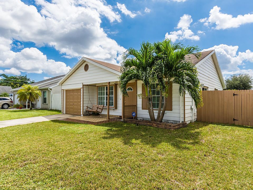 Lovely 3 Bedroom/ 2 Bathroom single family home with an attached 1 car garage with an epoxy floor. Upgraded Kitchen and Bathrooms including newer appliances. Hurricane shutters numbered for all of the windows, newer roof and 2017 AC. Enjoy the private fenced in backyard and close proximity to the community pool,basketball court and playground for the kids. $78/month HOA community, zoned for great schools make this a great starter home. THIS IS A MUST SEE!!