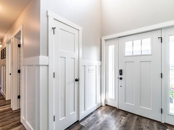 Welcome home! This charming house is a perfect blend of comfort and style, offering a spacious 2,456 square feet of living space. With four bedrooms and two and a half bathrooms, there's plenty of room for the whole family. Step into the impressive two-story foyer, adorned with elegant board and batten details that set the tone for the rest of the home. The open floor plan seamlessly connects the living spaces, creating an ideal environment for both relaxation and entertainment. The heart of the home is the kitchen, boasting a large island, walk-in pantry with appliance storage, and stylish stainless steel appliances. The dining space features a vaulted ceiling and patio slider door, allowing plenty of natural light. Cozy up in the living room with a crackling gas fireplace on chilly evenings. And let's not forget the convenience of a main floor half bath and spacious laundry room with a utility sink and custom built-in storage. The primary bedroom suite, located on the main floor, is a true retreat. Indulge in the tiled walk-in shower with glass doors, luxuriate in the soaker garden tub, and appreciate the dual sink vanity. His and her walk-in closets ensure ample storage for all your belongings. Upstairs, you'll find three additional large bedrooms with spacious closets, a full bath with a clever pocket door separating the tub/shower from the vanity, and extra rec space for family fun. Step outside to discover a true oasis. The oversized patio, complete with a pergola and built-in fire pit, provides the perfect backdrop for outdoor entertaining. Lovely landscaping surrounds the property, creating a serene atmosphere. And for all your storage needs, there's a generous three-car garage. Who says you can't have it all?