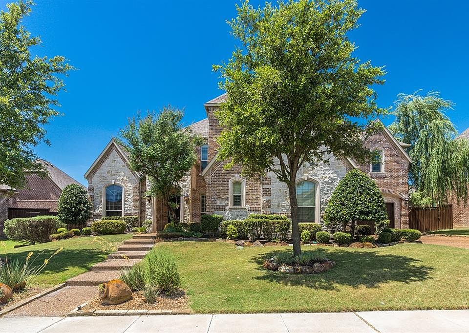 BACK ON THE MARKET is this stunning home in desirable Country Club Ridge zoned Wakeland! Home features open floor plan with master and secondary bedroom downstairs, large kitchen with double ovens, 6 burner gas stove, pot filler, walk in pantry, dual staircases, wet bars on both floors complete with refrigerators, and large bedrooms with tons of storage. Gorgeous private backyard with low maintenance pool and spa, turf grass, and an outdoor kitchen. Tankless water heaters, smart home, plantation shutters throughout, hand scraped hardwood floors, and walking distance to neighborhood and city park. Close to DNT, 121, upcoming PGA, businesses, and shopping.