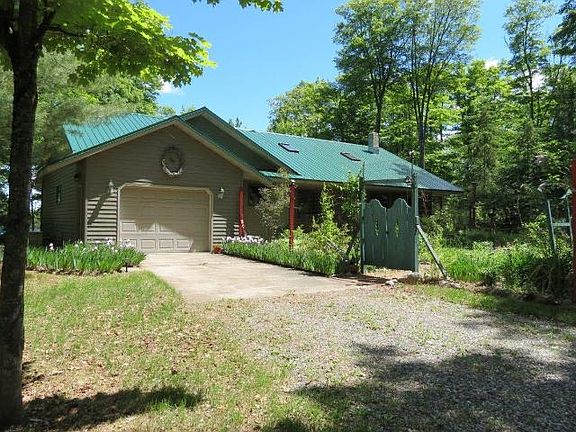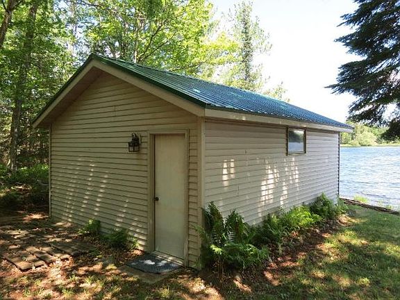 Gracious 3 bedroom, 2.5 bath home in very private, 2.9 acre wooded setting with mature Sugar Maple, Yellow Birch, Basswood and Evergreens. This home has 245 of sand/rocky frontage in a quiet, tranquil bay. The sunrises are simply spectacular! The home has a 1 car attached garage, screen porch, 1-1/2 car detached garage and a dry boathouse. The charming pond, beautiful perennial gardens and exceptional landscaping are special additions to this very special property. The Great Room is 24x18 and has a knotty pine, vaulted ceiling, hardwood maple floors, ceiling fan and skylight. The dry boathouse is 22x16 with concrete floor, new built-in trolley track system with electric winch. It has a maintenance free exterior. All building have new metal roofs in 2014. THIS HOME IS ONE THAT YOU WILL WANT TO MAKE YOUR OWN!