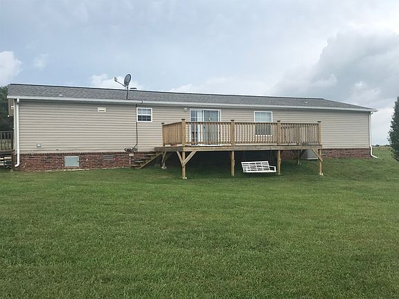 Large home on a perm foundation with wood burning fireplace and wonderful deck to enjoy the view. Home features 5BR/3BA, Foundation is pier, drawing attached. Beautiful farmland in excellent location on paved road. Gorgeous setting looking over land. Barn, Pond, Panels, Bring your animals! Barn is 37 x 40, outbuilding 12 x 16 and pole shed 14 x 32