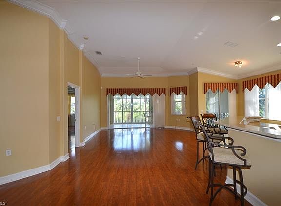 Enjoy the fabulous golf course views from the spacious lanai of this easy to maintain 3 bedroom/2 bath carriage home. Features include engineered wood flooring, solid surface kitchen counters, plantation shutters, crown molding, multiple ceiling fans, built in shelves and the tray ceiling and custom closet organizers in the master bedroom. Cook with gas and enjoy your meals on the lanai, breakfast nook, bar or formal dining area. Great location - very near the community pool and BBQ area. Additionally, this home is located within the prestigious Gulf Harbour Yacht & Country Club, which has an array of Club amenities available through an optional private equity membership.