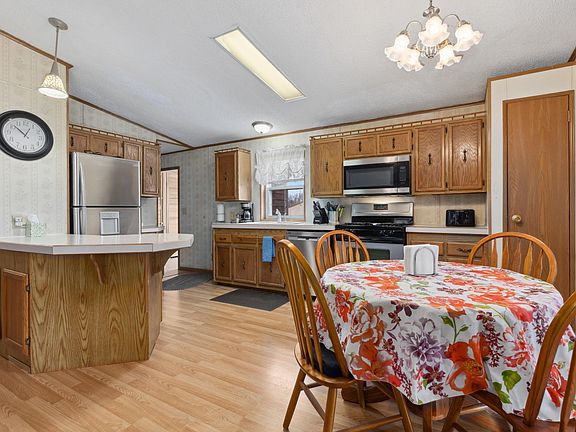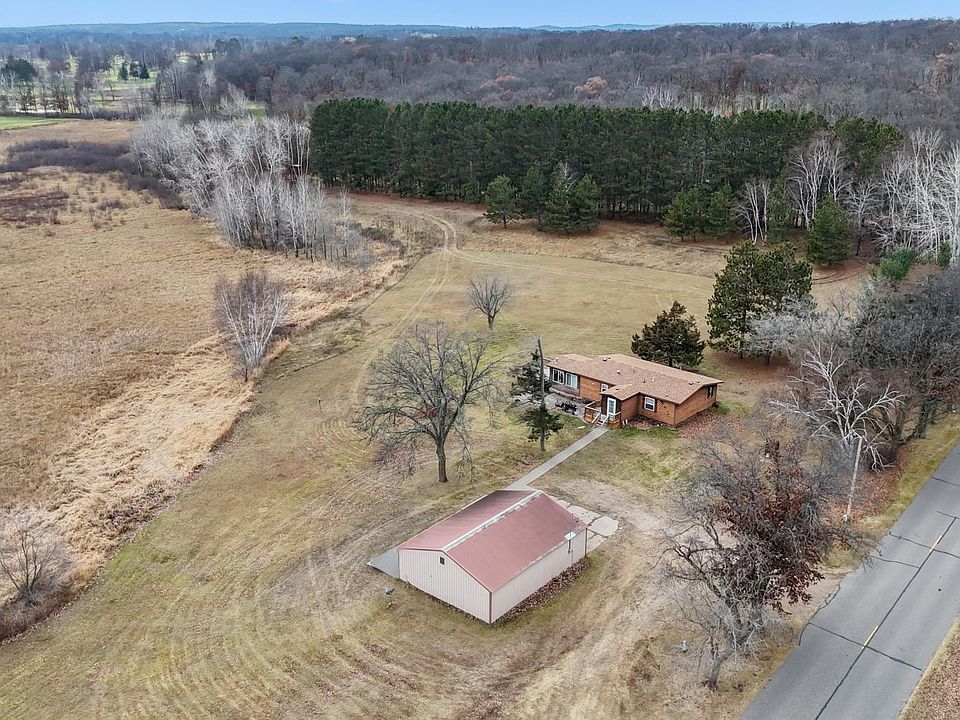 Location is key! This lovely neighborhood is surrounded by golf courses. The Gravel Pit golf course is just down the road and Cragun's golf course abuts the south border of this property. Fine dining options just down the road and conveniently close to the lakes. This 2 BR, 2 bath home has main-level laundry, and features a sunroom w/ gas fireplace to enjoy your views of the backyard. Lots of wildlife with the pond and wetlands. New roof and SS appliances. The primary suite offers a walk-in closet, separate sink from the bathroom and walk-in shower. Some handy work will bring out the potential in this home. The 40x30 insulated garage has a separate 29x14 heated/cooled shop area. Beautiful property with 20 acres gives you privacy from your neighbors! Deer stand will stay with the property. Make an appointment and come take a look with your realtor today!