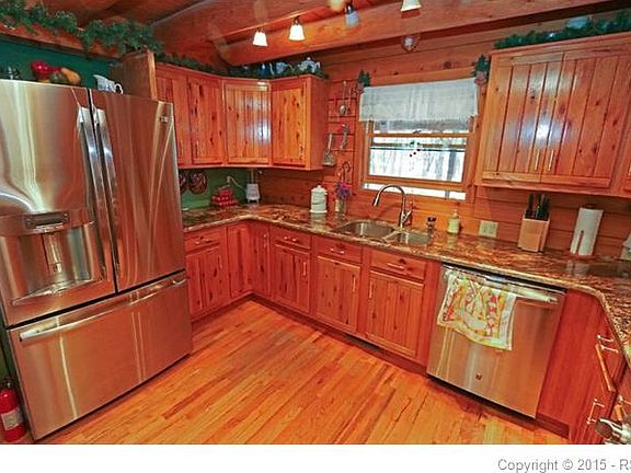 Custom built true log home on 5 serene and usable acres! This log home was converted to natural gas and features many nice upgrades including beautiful wood floors and wood work, metal roof, vaulted ceiling with large windows, updated kitchen with SS appliances and granite counters, radiant hot water heat, vaulted master with attached bath and walk in closet, finished basement with a wet bar and a covered front porch to enjoy. The fully fenced property features a 36x42 barn, 22' dome greenhouse and whole house generator! - so many more features to include: interior sump pump, water neutralizer, new pressure tank, newer septic, wood burning stove, dog run etc.. This is a great place with many great features for the price!