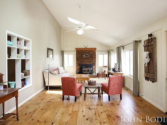 Exceptional Farmhouse 15+acres surrounded by state land,Large Kitchen with vaulted ceilings open air to family room, FP, pellet stove insert, Dining Room,Living room, Barnwood floors on main level, Large Master with 2 closets, Master Bath on main, 3 bedroom and 1/2 bath upstairs, 24x24 Garage, 32x40 Finished heated pole barn with additional unfinished cold storage pole barn 32x40 attached, a 10x80 lean/to attaches to length of pole barn for horse stalls or storage/animals. Large established gard ening area with 8x12 greenhouse. Home is well maintained and is a unique opportunity.
