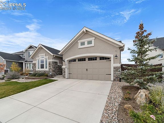 Discover the perfect blend of sophistication, comfort & functionality in this stunning Savannah ranch-style home in the desirable North Fork community. Boasting custom upgrades & professionally designed landscaping, this better-than-new property offers a low-maintenance lifestyle with unparalleled convenience. Located near award-winning District 20 schools, parks, shopping, dining & with easy access to many amenities, this home enhances every aspect of modern living. Step inside to flowing laminate wood floors & versatile spaces. The front guest bedroom with vaulted ceilings doubles as an office with access to a full bathroom. A popular flex space with vaulted ceilings serves as a living room, dining room, or office. The gourmet kitchen is a chef's dream, featuring quartz countertops, custom cabinetry, stainless steel appliances, a kitchen island, pantry, & an adjoining dining area that opens to a covered composite deck & paver patio—perfect for hosting or relaxing. Adjacent to the kitchen, the great room offers a warm atmosphere with a stone-surround gas fireplace. The luxurious primary suite boasts vaulted ceilings, deck access, a sitting area, & a spa-like five-piece bath with a jetted tub & walk-in closet. The finished basement expands the living space with a family room featuring 9’ ceilings & a wet bar. Guests or extended family will love the junior suite with an ensuite bath & walk-in closet. Two additional bedrooms & a full bathroom provide extra flexibility. Upgrades include central AC, a humidifier, custom blinds, a stucco & stone exterior, & epoxy-coated garage floors. Situated near Pine Creek High School & Encompass Heights Elementary & just minutes from parks, shopping, dining, & major routes, this home truly has it all. Schedule your showing today!