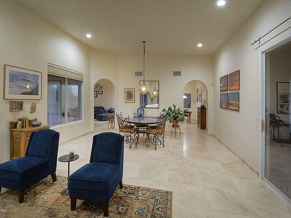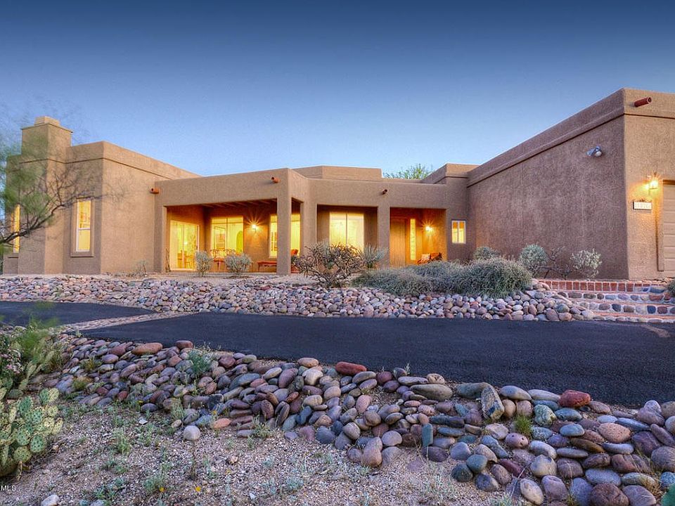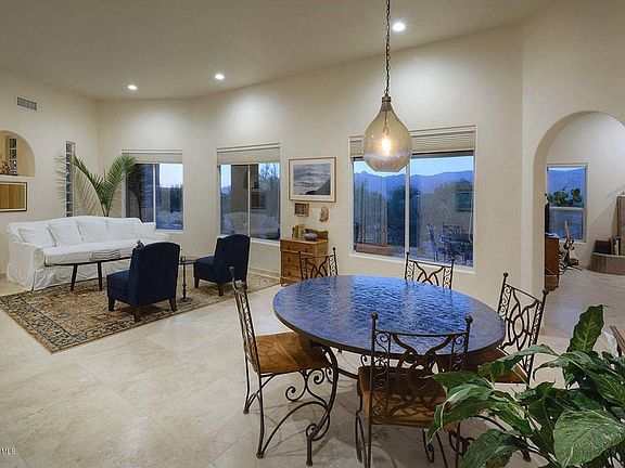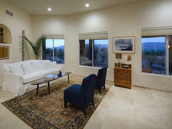 SECLUDED SOFT CONTEMPORARY ON OVER 1 ACRE WITH MOUNTAIN VIEWS IN KIVA RIDGE ESTATES. EXQUISITE LIVING ROOM AND DINING ROOM WITH HIGH CEILINGS, WALLS OF WINDOWS, GORGEOUS TRAVERTINE FLOORS, GOURMET ISLAND KITCHEN WITH GRANITE COUNTERTOPS, GAS STOVE TOP, OVEN, STAINLESS STEEL REFRIGERATOR & DISHWASHER, LOVELY BREAFAST AREA, FAMILY ROOM WITH CHARMING FIREPLACE, 4 BEDROOMS (SPLIT PLAN), 2 1/2 BATHS, MASTER W/SITTING AREA, LUXURIOUS BATH W/GRANITE COUNTERTOPS, DOUBLE SINKS, WONDERFUL SHOWER, GARDEN TUB, TRAVERTINE FLOORS, LARGE WALK IN CLOSET, LAUNDRY ROOM AND OVERSIZED 2 CAR GARAGE. ENJOY EITHER THE FRONT PATIO OR THE LUSHLY LANDSCAPED BACKYARD WITH COVERED PATIO, GRASS, MOUNTAIN & SUNSET VIEWS. FLOORPLAN LOCATED UNDER PHOTOS/VIRTUAL TOUR