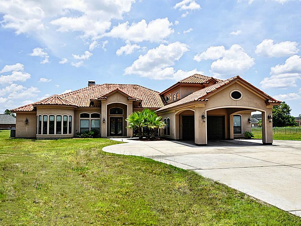 Gorgeous 6/5/2 Custom Mediterranean Home w/backyard lake/pond view. Stained concrete & hand Scraped Hardwoods thru-out, Island Kitchen+Breakfast Rm, Formals, Media Rm, additional room off Kitchen w/full bath, upstairs 2 Bedroms+Gameroom, 2 Masters, Master Suite/w/sitting area. Nice outdoor Kitchen, great for entertainment. Whole Home Generator. Minutes from the The Woodlands. Completely gated.
