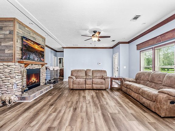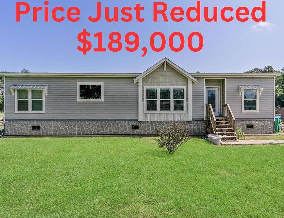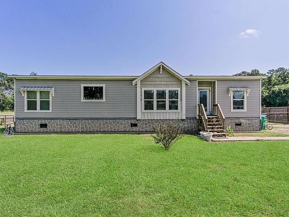 Welcome home to your country oasis! This 3 bedroom, two bath mobile home features new flooring throughout the main living area and master bedroom, along with fresh paint throughout. The open floor plan provides ample space for entertaining, with an oversized island perfect to hold that Thanksgiving feast! The fireplace in the living area gives a warm and welcome ambiance. Escape to the primary suite which features a large soaking tub and separate shower, the perfect place to relax and unwind! Outside you will find a large covered patio, perfect for an evening escape! The property has water access around the home, and throughout the back yard to make your homesteading dreams an easy reality! There is also a large metal covering with RV electrical hookups. Call to schedule to see this beautiful home today! *Structure square footage nor lot dimensions warranted by Realtor.
