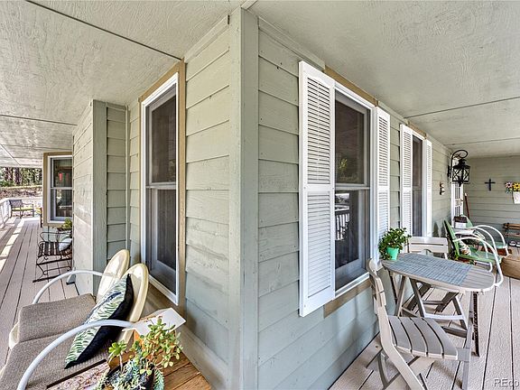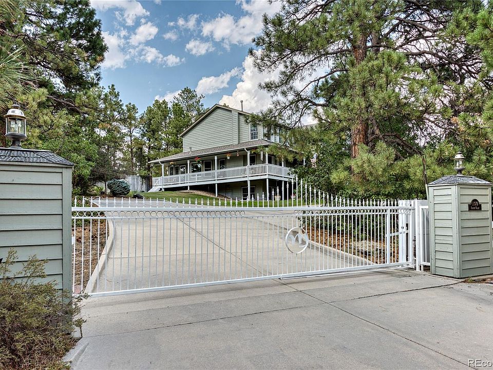 YOU WILL FALL IN LOVE WITH THIS COZY HOME TUCKED INTO THE TOWERING PINES. IT IS GATED FOR PRIVACY IN THIS UPSCALE COUNTRY NEIGHBORHOOD. A GREAT FAMILY HOME TO RAISE YOUR KIDS COMPLETE WITH HORSE FACILITIES, KENNELS FOR DOGS AND MUCH MUCH MORE. THE WRAP AROUND DECK IS SO RELAXING AS YOU WATCH THE BIRDS AND WILDLIFE PASS BY. THE LARGE EAT IN KITCHEN HAS BOTH A BREAKFAST BAR AND LARGE EATING AREA NEXT TO THE BAY WINDOW WHERE YOU CAN WATCH THE KIDS ON THE PLAYSET OR RAMBLING THRU THE WOODS. ALSO FEATURES CONCRETE COUNTERS. IT FLOWS INTO EVERYONE'S FAVORITE HANGOUT-THE SUN ROOM. SO PRETTY AND QUAINT. THE DINING ROOM IS LIGHT AND BRIGHT, SPACIOUS AND CHARMING AND LOOKS INTO THE FAMILY ROOM WITH A FIREPLACE OF RECLAIMED BRICK FROM DOWNTOWN DENVER. IT IS OPEN TO THE LIVING ROOM WITH A SECOND FIREPLACE. THE FLOOR PLAN IS GREAT FOR ENTERTAINING. THERE IS AN OFFICE WITH A WALL OF BUILT IN SHELVES FOR ALL YOUR BOOKS AND WORK MATERIALS, IF YOU WORK FROM HOME, IT'S PERFECT. THE MASTER SUITE IS VAULTED AND OPEN WITH A 7PC LUXURIOUS MASTER BATH WITH DOUBLE HEAD SHOWER, GLASS BLOCKS, HEATED FLOOR AND JACUZZI. THERE ARE 3 MORE BEDROOMS AND A FULL BATH UPSTAIRS. DOWNSTAIRS THERE IS A GYM, A MEDIA ROOM WITH WET BAR AND DESK/DEN AREA. A BEDROOM AND 3/4 BATH WITH A CRAFT AREA AND EXTRA CLOSET STORAGE SHELVES FOR GAMES . OUTSIDE YOU HAVE A SPACIOUS DECK FOR DINING AND ENTERTAINING. FROM THERE YOU CAN STROLL BACK TO THE 5 STALL BARN PLUS 2 STALL LOAFING SHED AND PADDOCKS. THERE ARE ALSO 3 LARGE FENCED PASTURES FOR YOUR 4 LEGGED FRIENDS. THERE IS A COMMUNITY PARK AND RIDING ARENA FOR RESIDENTS.