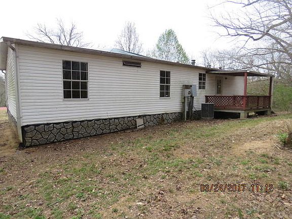 Doublewide on a fairly level lot close to downtown. Home needs several repairs, has a covered front porch, covered rear deck, shed, large front yard.