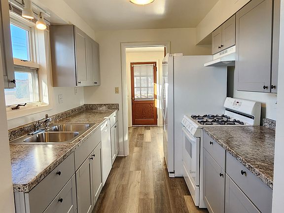 Welcome to a cozy and inviting two bedroom, one bathroom home with many updates! This charming abode features modern appliances, ample cupboards and countertops, and original hardwood floors in the living room and dining area. Enjoy a spacious layout with a separate laundry room, perfect for keeping your space tidy. Plus, the detached garage is ideal for all your DIY projects. Relax on the charming front porch and experience peace of mind in this lovely residence. Lease term is for a 12 month period, owner pays water, sewer, garbage, renters insurance required, no pets, no smoking.