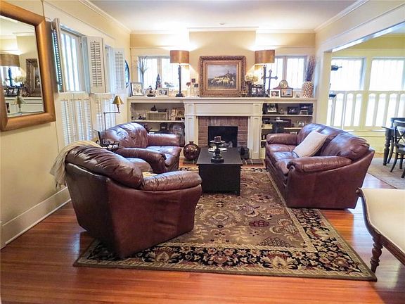 Charm exudes from every inch of this updated home! Exterior features a carport plus 3 garages in the rear and a gorgeous partially covered outdoor entertainment area with a fireplace, sound system and pull down projection screen. The interior features a formal living and dining room, spacious den, TV room, luxurious kitchen with granite countertops, downstairs master bedroom plus office, 2 bedrooms and 1 bath upstairs, updated baths, partial basement and walk-in attic. Tons of upgrades and updates!