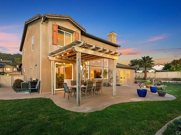 Built in 2003, this Plan 3 home features a spacious PRIMARY SUITE ON THE MAIN LEVEL! Offers unobstructed southwesterly views of San Diego Sunsets, hills and city lights. With almost 3300 square feet, this distinctive home is the perfect blend of elegance and comfort on a half acre prime lot in the prestigious community of Sage Canyon Ranch. The original owners have been meticulous and pride of ownership can be found at every turn! This popular Plan 3 floor plan offers a large office on the main level and Wood Flooring. Special features also include a Chef’s kitchen complete with large island, wall to wall cabinetry including added storage in Butler’s pantry, double ovens, 5 burner gas cooktop, leathered granite counters, stone and granite full backsplash. Spacious family room provides soaring ceilings and tall windows for natural lighting! A dramatic stone fireplace with mantel and custom built-ins make this space the perfect spot for family gatherings. Spacious Primary Suite is conveniently located on the First floor and features direct outdoor access. Master Bath boasts dual sinks and vanities separated by an oversized shower, luxurious soaking tub, linen cabinets, and an oversized closet with his and hers access. A added feature is the large Bonus room that is perfect as a Game Room, Homeschool room, Home Gym, Home Theatre or second Family Room. 3 secondary bedrooms plus and bathroom complete the second level. Gorgeous landscape and hardscape in both front and back include a variety of mature Palms, fruit trees & Artificial Turf. Plenty of room to add a pool and spa. Side yards are wide and hardscaped for EZ maintenance and include a storage shed and possible boat, RV parking. Dual Air Conditioning. Sage Canyon Ranch is a premier community of 80 homes in North San Diego County with beautifully maintained homes, large private lots, LOW HOA, Scenic Views and is only minutes to both Highway 78 and Interstate 15. Top rated schools, parks, a beautifully maintained trail system for walking, biking and getting the family out into nature. The amazing lifestyle also includes Beautiful wineries, soccer fields and a horse park nearby.