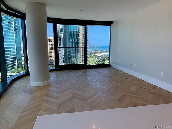 Available December 1, 2024 shown by appointment only. Rarely available and highly desirable largest 1bed/1bath (walk-in shower)/1pkg (Mezzanine Level) at Anaha. Wraparound corner unit facing East with interior 927 sq.ft., floor-to-ceiling glass w/Diamond Head, Magic Island and mountains, amazing views dawn to dusk. Chevron-patterned hardwood flooring from entrance hallway to the kitchen and open up to the living room, bedroom with custom walk-in closet, European cabinetry kitchen with Miele appliances. Merriman's, Istanbul, Island Brew Coffeehouse on the ground floor, walk to Whole Foods & Ward Village shops. Rent includes One (1) covered parking on Mezzanine level M-A16. Basic cable and internet included. *Electricity usage can be billed monthly or fixed at $100/month and adjust at lease end. GET (4.5%) paid by the Tenant. Tenant insurance required prior to move-in. No smoking (no exception). ** Pet owners are encouraged to apply for consideration.