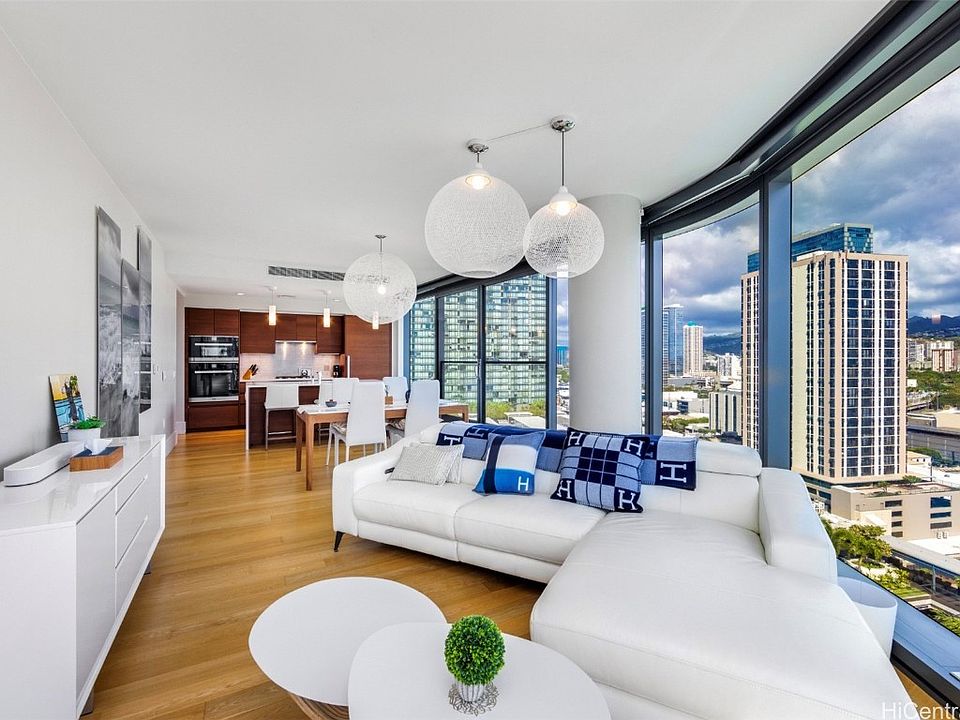 Anaha stands as one of Honolulu's most coveted luxury condominium destinations in Ward Village, an award-winning community in Kaka'ako where a "Work, Play, Life" lifestyle is at the forefront. This spacious fully furnished 1 bedroom, 1 bath, 914 sq.ft. residence enjoys dynamic 180-degree views stretching from Magic Island and the Pacific Ocean to urban Honolulu and the majestic Ko'olau mountains. A well-designed floor plan features an open-concept kitchen, dining, and living areas, a resort-style bathroom with double vanity and walk-in shower, a spacious walk-in closet with elegant built-ins, and a private bedroom space looking toward tranquil mountain views. Anaha features a host of resort amenities including an iconic infinity-edge pool with a transparent overhang, a full-size tennis court/pickleball courts, volleyball court, multiple barbecue areas, kid's play area, golf simulation, billiards room, movie theater room, chef's kitchen, and much more. If you're looking for the Idyllic Hawaii lifestyle, put Anaha #1408 on your must-see list.