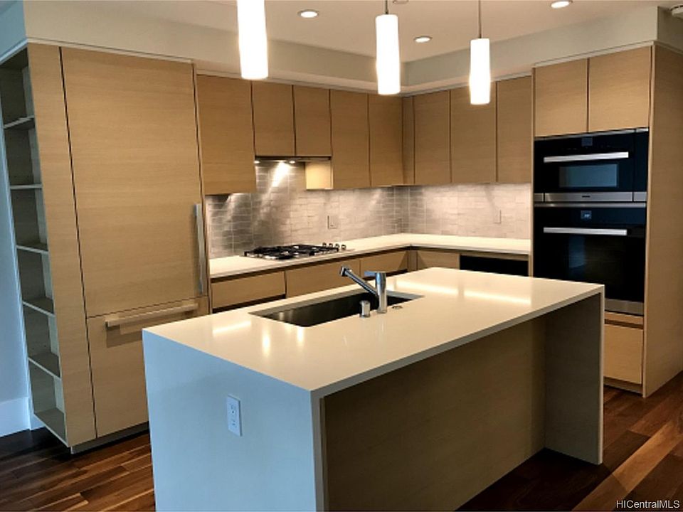 Anaha is one of the most luxury condos in Kakaako of a master-planned Community "Ward Village". One acre amenities deck offers ocean view glass-bottom heated pool, hot tub, BBQ pavilions, and tennis/volleyball courts. 6 guest suites, gym, kids play room, theater and much more. Walking distance to beaches, movie theater, famous Ala Moana Shopping Center, and across the street from Whole Foods Market. Easy access to H1 freeway. This unit is available immediately. No pet, please.