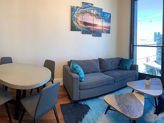 Your chance to live in one of Honolulus most luxurious high rise. Conveniently located in Kakaako, right across the street from Whole Foods, Ward Village and near Waikiki, Ala Moana. This immaculate FULLY furnished studio is ready for move in NOW. Featuring motorized blinds, High-Efficiency A/c, gas range, Miele kitchen appliances, European cabinetry. The amenities here are endless, beautiful ocean view pool and jacuzzi outlined with cabanas, outdoor BBQ pavilions, deluxe fitness center, sauna rooms, yoga room, golf simulator, volleyball and tennis court, plus much more. Merrimans Restaurant is located on the first floor. The building offers on-site valet, concierge, dry cleaning services. Includes one parking and one storage locker conveniently located on the same floor.