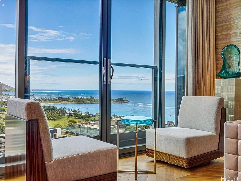 MASSIVE PRICE REDUCTION, BEST VALUE LUXURY BUILDING IN TOWN, Anaha 2-bedroom 2-bath residence on the preferred sunrise, ocean side of the building, with absolute stunning south shore views of Diamond Head. Many upgrades include chevron patterned wood floors, upgraded Miele appliance suite, Phillip Jeffries wall covering, tri-color designer drapes, true mother of pearl wall tile and much more. Conveniently located next to Whole Foods, Movie Theatres, restaurants, parks, and shopping all in the center of the award-winning Ward Village. Many resort-like amenities include a fitness center with sauna and steam rooms, lap pool, golf simulator room, putting green, tennis courts and many sophisticated entertaining spaces, topped off with an attentive concierge staff. Anaha, means “reflection of light” setting a high note to the evolving architecture of Honolulu. Every space, from the rolling glass exterior to the ocean view amenity deck, is an expression of grace, elegance and innovation.