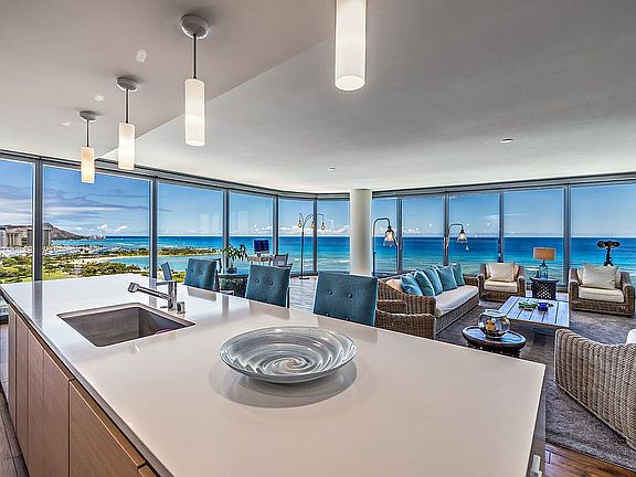 Spectacular ocean, Diamond Head and city views from this large 3 bedroom / 3.5 bath unit. Best value for a highly desirable "A" stack. Situated at the right floor height so you can enjoy blue skies and ocean views, the greenery of Ala Moana Park, and the sands of Ala Moana beach... Two side by side parking located close to the entrance and on the same floor as your storage unit. This 3 bed/3.5 bath unit features 9-foot ceiling, Miele appliances, quartz countertops and hardwood floors. Enjoy resort style amenities ... glass bottom swimming pool, gym, barbecue, golf simulator, volleyball court, theatre room and entertainment spaces. Located within walking distance to Ala Moana Beach, Ala Moana shopping center, Whole Foods and more in the vibrant Kakaako area. A truly great buy !!