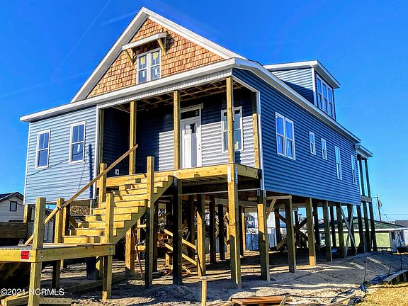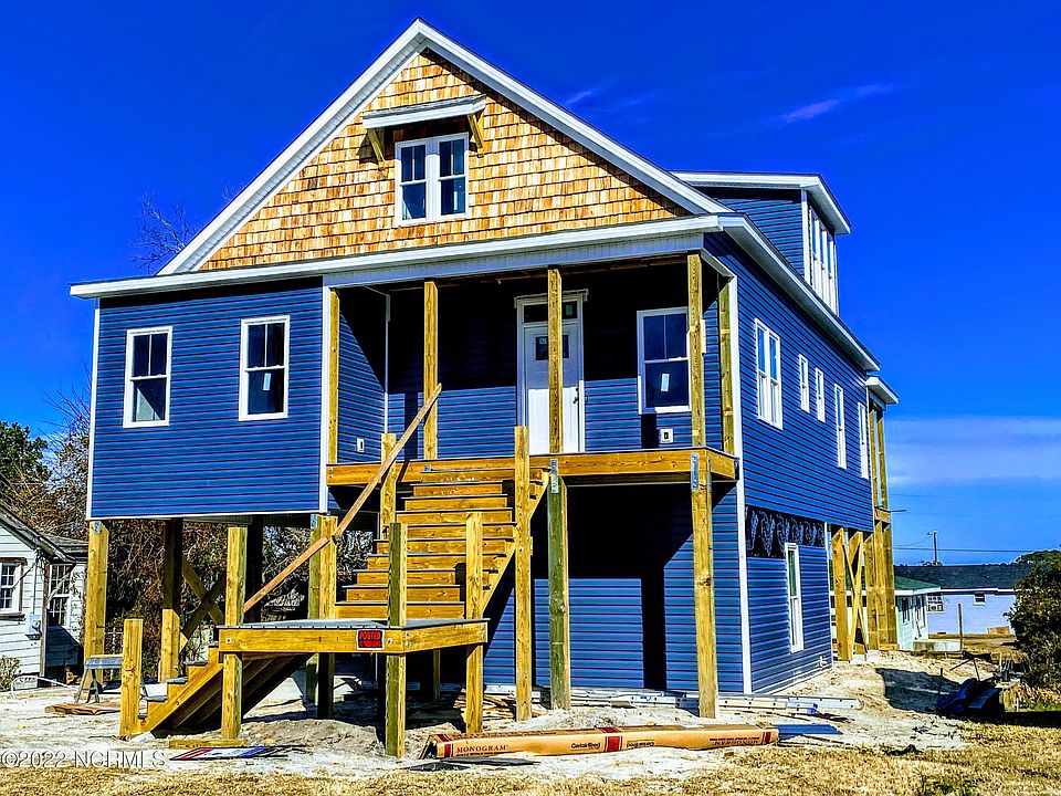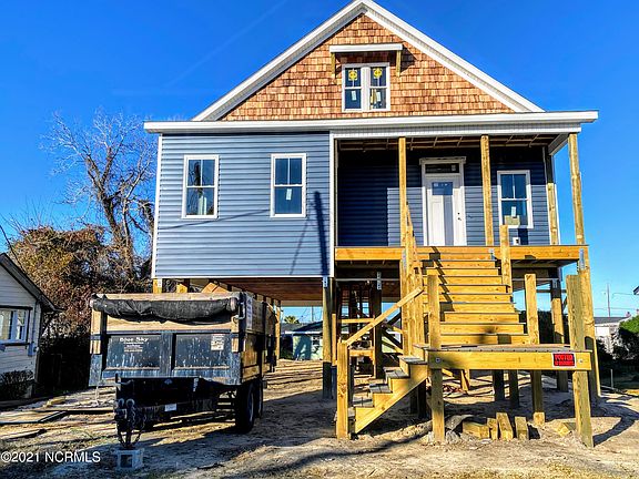 .NEW Custom Carolina Coastal home, 4BD/3BA with BOOMING WATERVIEWS in the heart of Morehead City! Pictures updated 1/29, sheetrock up and being painted first week of Feb. This beautiful custom home is offered by Blue Sky Construction, this small local custom builder only puts up 1 to 2 new homes per year, don't miss this one! Under Construction to be finished in March 2022. Act fast and Buyers can select interior colors and finishes to their liking within builder allowances or pay for upgrade. CORRECT YOU can custom finish and be part of building your dream home! MUST SEE the waterviews.... from Master bedroom, upstairs bedroom, kitchen, living rm, front and back porch its panoramic! Master and two bedrooms on primary living floor; 4th bedroom, full bath and add'l living space upstairs. 4-Car/Boat/Jet Ski under home parking with drive-in access from front and rear of property. Custom upgrades to include-20 x 20 conditioned ground level bonus space to use for your liking. Both decks will have real wood ceiling to compliment real cedar shake peak, Led Mirrors, Certainteed Monogram siding (view disclosures for Lifetime warranties), LVP flooring, walk in shower and much more. Perfectly located in the heart of Morehead City and walking distance so you can enjoy all this Coastal Gem community has to offer.