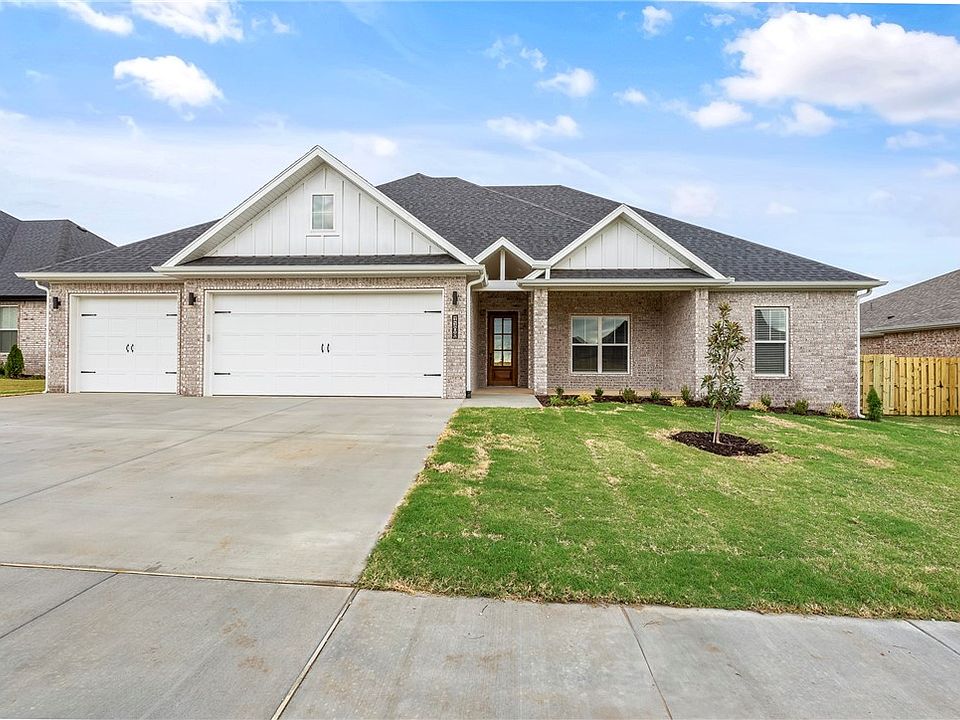 Another Seay Construction beauty! Features 4 bedrooms, 3 full baths and 3 car garage. Features open floor plan with upgraded trim package, wood floors, 3 cm granite,gas stove with built in oven and microwave. Built ins include the cubbies to drop jackets, backpacks, etc and built ins on side of the fireplace. There is storage galore in this home. The pantry and primary bedroom closets are huge. The subdivision has community pool. Taxes are not assessed on the home yet. Conveniently located across from Pea Ridge High School with easy access to all of NW Arkansas.