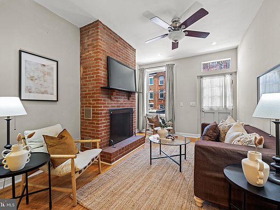 Welcome to 1108 Battery Avenue, a beautifully updated three bedroom, three and a half bathroom home nestled in the heart of Federal Hill with private parking included. At almost two thousand square feet, this historic home offers timeless charm with modern updates. As you walk in you are greeted with a beautiful fireplace, original hardwood floors, a neutral color palette, and sun-filled windows creating a warm, inviting atmosphere. The main level features a cozy front living room and an interchangeable spacious dining area. The eat-in kitchen impresses with stainless steel appliances, gas cooking, and a mudroom off your parking pad featuring a half bath and brand new washer and dryer. You can also enter your private breezeway through the side-entry doorway. Because this home is semi-detached, the entire east side is lined with windows allowing for ample natural light on all three levels. And if that weren’t enough, the owners have installed four new skylights throughout the home, allowing for even more light. Upstairs, two generously sized bedrooms provide ample space, with one offering access to a private rear deck with a wet bar. Each bedroom features its own private en-suite bath, making this home perfect for people looking for privacy and space. You can make any room a primary suite in this house - perhaps you’ll choose the top level as your primary suite where you’ll enjoy not only a private bed and bath, but a bonus room that can serve as an office, workout space or simply a reading nook by the window. Storage is abundant, with large closets throughout each level, and additional space in the unfinished cellar basement. Recent improvements include a new HVAC (2023), windows throughout (including skylights) (2024), sump pump (2024), washer/dryer (2022), and a brand new roof (2023). The owners removed a second tier deck to install the new roof, so any new owner can easily reconstruct one if they desire a roof deck. Located in one of Baltimore’s most sought-after neighborhoods, this home has easy access to everything Federal Hill has to offer. Enjoy the local favorites with top-rated restaurants, scenic Federal Hill Park, lively bars, boutique shops, and everyday essentials just around the corner. Quick access to downtown, major highways, and public transit ensures effortless commuting.