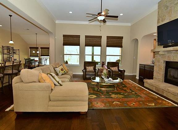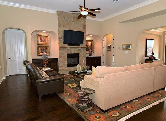 Beautiful Giddens home with 3 car garage on a 1 acre lot, features a large living area open to the kitchen, plenty of room to entertain. Many custom touches, including granite counters through out, built ins, crown molding, wood floors, custom window treatments, extra high ceilings and recessed lighting. This plan is a 4 bedroom or 3 bedroom with an office with 3 full baths. Dog lovers! the back yard is already fenced with wrought iron style fencing. Move in ready without worrying about the extras.