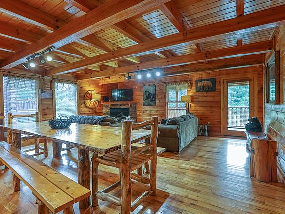 INVESTORS, DO NOT WASTE TIME! This immaculate 4 Bedroom, 4 Bath Log Cabin in Black Bear Ridge Resort has a proven rental history of $106459 in 2021 and potential for great ROI! Nestled in a mountain setting, the location is only minutes to the center of Pigeon Forge, Dollywood, The Great Smoky Mountain National Park, shopping, and all the local attractions. This Smoky Mountain retreat offers 2 levels, hardwood floors throughout, a spacious mahogany wood kitchen with a unique large dining table, 3 fireplaces, and can sleep up to 16 people. So much room for the whole family to enjoy and relax, great for those large family get-togethers. If a second home fits your needs put this one on the top of your list! The back deck offers picturesque wooded mountain views with a new 8-person Hot Tub perfect for relaxing after enjoying all the sights and sounds that this tourism market has to offer. The cabin was stained in 2021! Additional In 2022 - NEW hot tub, In 2021 - NEW stove, In 2020 - NEW air conditioner, hot water heaters, and refrigerator. Drone photography was used.