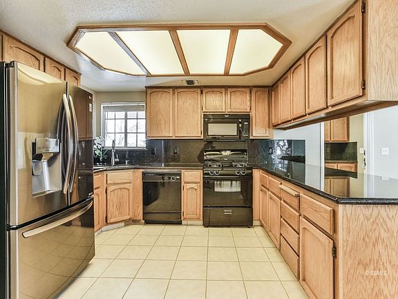 Hard to find 4 bedroom with one of Ridgecrest most popular floor plan. Updated kitchen with granite counters and corner sink with windows overlooking front yard. Great size family room with wood burning fireplace and vaulted ceilings. Separate big living room! Home features.. new paint, tile floors and crown molding. Master bedroom is great size with door to backyard. Master bathroom has been updated granite counters and an enormous georgous walk in tile shower, one you have to see to believe!! Inside laundry! Easy maintenance landscaping and big back patio. This home is all ready for its new owners! Don't let this one slip away!!