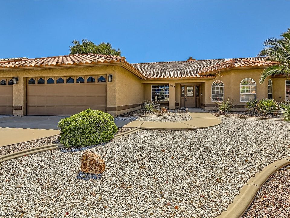 BEAUTIFUL SINGLE-STORY HOME IN THE CALICO RIDGE COMMUNITY OF HENDERSON! THIS HOME FEATURES VAULTED CEILINGS, PLANTATION SHUTTERS, ELEGANT WOOD AND TILE FLOORING, AND AN OVERSIZED 3-CAR GARAGE. DESIGNED TO BE HANDICAP ACCESSIBLE WITH OVERSIZED HALLWAYS AND DOORS, THE PROPERTY IS ELEVATED WITH GREAT VIEWS AND HAS POTENTIAL FOR RV PARKING. LOCATED ONLY MINUTES FROM LAKE MEAD. THE GORGEOUS KITCHEN OFFERS GRANITE COUNTERTOPS, A PANTRY, AND A LARGE ISLAND WITH BEAUTIFUL CABINETS, A GARDEN WINDOW, AND A VENT. THE MASTER SUITE INCLUDES SLIDING BARN DOORS TO THE BATHROOM, A SEPARATE SHOWER, AND A JETTED BATHTUB. THE MASTER ALSO FEATURES A WALK-IN CLOSET. ENJOY THE BEST OF COMFORT AND STYLE IN THIS EXCEPTIONAL HOME! THE LARGE LAUNDRY ROOM INCLUDES CABINETS, A SINK, AND LOTS OF STORAGE. THE BACKYARD HAS A COVERED PATIO AND SUNSHADE.
