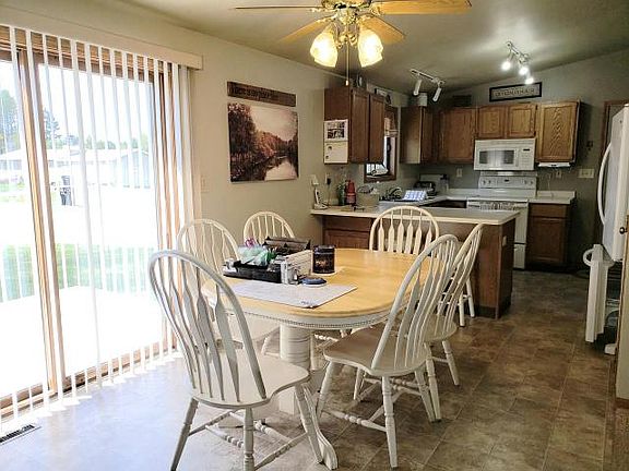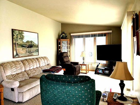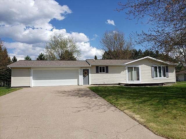 RANCH CITY HOME. This home is low maintenance with vinyl siding, a composite front deck and newer roof. The attached garage is heated, 24x24 with extra space for storage and a service door to the front and back of the home. The open floor plan offers kitchen, dining area and living room with a vaulted ceiling. The sun deck is located off the patio door in the dining area. There are 2 bedrooms with closets, a full bathroom and stacking washer dryer unit tucked into the hallway closet. Downstairs you will find a 3/4 bathroom with the remainder of the basement being stud walled and insulated. Ready for your finishing touches! Enjoy the large, level yard and hang out laundry with the built in clothes poles. Time to go from being a renter to a homeowner. Call for your appointment to view this home in a very convenient city location