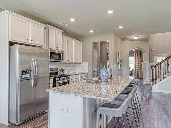 Open concept gourmet kitchen opens to breakfast area and family room with corner fireplace.Dining room with coffered ceilings.First floor primary suite with an expansive walk-in closet, two separate vanities, linen closet, garden tub and walk-in shower.The flex area is perfect for a study to add an ideal space for working from home.Upstairs loft and media room are perfect for entertaining guests.Home and community information, including pricing, included features, terms, conditions, availability and sales procedures related to appointments subject to change without notice. All images are for illustrative purposes only and individual homes, amenities, features, and views may differ. Images may be subject to copyright.