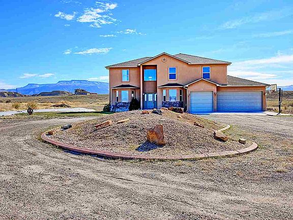 Outstanding 360 degree views of Grand Mesa and the Monument! Rural peacefulness and only 15 minutes from Orchard Mesa. Great custom built home by owner/contractor. Features bamboo flooring on main level, 5 burner gas stove in large kitchen with extra counter space and storage. 4 bedrooms + an office. The kitchen also has a breakfast bar, large restaurant style booth and there is a formal dining room. Adjacent living room stays cozy with a wood stove. Pressurized irrigation water on a meter - great for gardens and horses! 3 Zoned heat, central air, built in speakers and office/den on main level. Upstairs game room w/wet bar, two-way gas fireplace in master suite/bath, jetted tub and walk in shower. Deck off of master suite faces east for sunrises. Outdoor fire pit, hot tub, and room for all your toys.