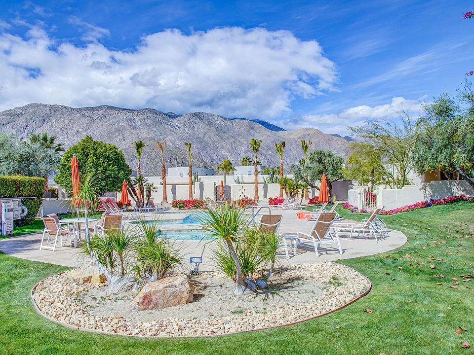 More than a home. This is a lifestyle delivering on many levels: privacy, beauty, design, and value. Greenhouse West in Midtown Palm Springs sits on 10 lush acres offering a lovely respite from the outside world. Tall walled courtyard is super spacious and a room unto itself. Double doors slide open creating that indoor/outdoor feel we love! Large corner fountain is a perfect mix of form and function. The 2-bedroom, 2-bath single level living configuration works so well and because it's a corner unit, the desert light is flowing through! Kitchen is surprisingly roomy considering the home's overall square footage. Two large pools are a hit with those who appreciate out-of-the-box pool design married with those fabulous Santa Barbara style umbrellas you'd want to spend time enjoying! These amenities plus spa and tennis truly set this property apart from so many others. And making it even more beautiful, there's no eyesore iron gates hugging the pools and reducing incredible mountain views. Parking is a breeze as its relatively close-by plus there's plenty of guest parking. This special home will go quick. It checks all the boxes and then some!