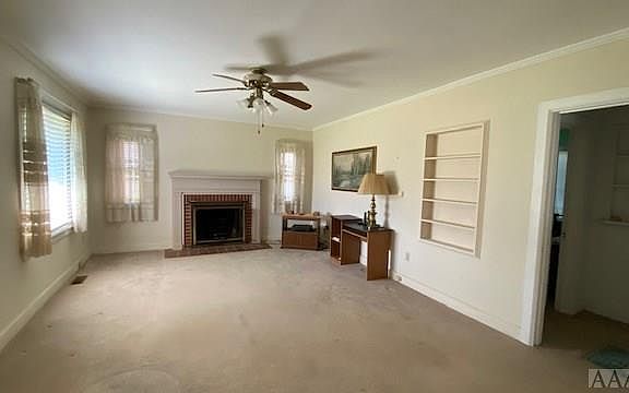 Spacious brick Cape style home w big yard offers plenty of room for play, gardening & more. The home offers a formal living room w a gas log fireplace and dining room, sunporch that adjoins the garage. First floor has two bedrooms and a full bath. Second floor also offers two bedrooms, full bath and sitting area with vintage wide pine paneling. Appliances convey including washer/dryer. Home is on natural gas. Additional covered parking with the double detached carport. Upstairs ceiling has some loose/fallen ceiling tiles that need repair.