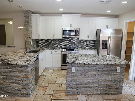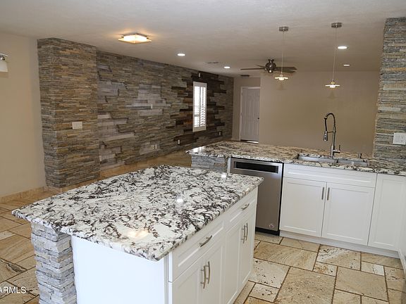 For Rent - Beautifully Upgraded 3 Bed, 2 Bath in Gilbert. This spacious home features an open floor plan with a large eat-in kitchen, oversized island, granite countertops, walk-in pantry, and plenty of white cabinetry. The living area has 18'' travertine-style tile throughout. The master suite offers a large walk-in closet and a built-in entertainment center. Outside, enjoy a beautifully landscaped backyard perfect for relaxing or entertaining.