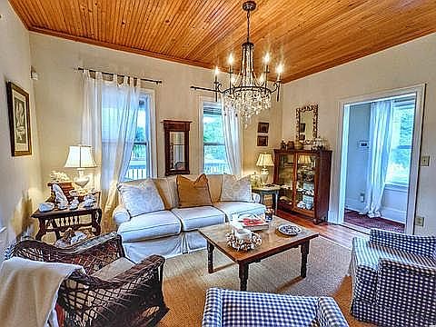 This charming circa 1900 home has been fully renovated. It has 2 Bedrooms and 2 1/2 baths. There have been several walls removed that could be replaced to add a third bedroom if desired. The home is situated downtown within walking distance to shopping, dining, and boutiques. Across the street there is a wonderful riverwalk in a beautiful historic town. All of the floors are hardwood with the exception of the kitchen and baths, which are quarried French Limestone tile. The ceiling heights are 10 ft. downstairs and 9 ft. upstairs. The ceilings are beadboard and the moldings are custom throughout. The master bedroom is spacious with several windows. The guestroom is inviting and comfortable. All appliances convey, with the exception of an all in one washer/dryer unit. This home is zoned Core Commercial however it can also be residential. It could be used as a "pied-a-terre"....live on the top floor and use the downstairs as an antique's store, an attorney's office, CPA office, book store, etc. The possibilities are unlimited!