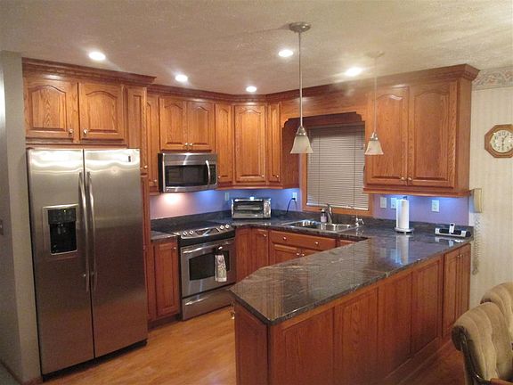 Really Quality New Oak Kitchen Cabinets and Granite Counter Tops, (3) Three Bedroom, (2) Baths, Gas Fireplace-Family Room, Walk Out Lower Level to Hot Tub Enclosure, (Hot Tub and Sauna not included), Wet Bar, RV Big Parking Slab, and a "Mother in Laws Suite". Owner is a Taxidermist and has built 400 sf addition off the Double Garage. Could be shop or living area, Garden Shed, Great Neighborhood, Center Boulevard Street, View Lot.