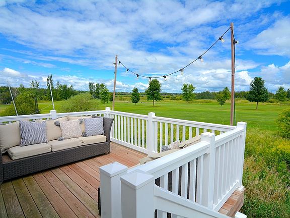Nestled at the end of a cul-de-sac adjoining a picturesque golf course, this property enables sweeping views of the lush greens. This newly built-2018 home features an open floor plan, high vaulted ceilings, and large windows that flood the space with natural light. The kitchen boasts stainless steel appliances, and an island perfect for entertaining! The full/unfinished basement is a blank canvas for you to add additional living space. Off the dining room, step outside to the deck, ideal for relaxing and watching the sunset over the golf course. Additional highlights include a 2 car garage and a meticulously well-kept landscaped yard yet easy to maintain. Don't miss this rare opportunity to own a piece of paradise!