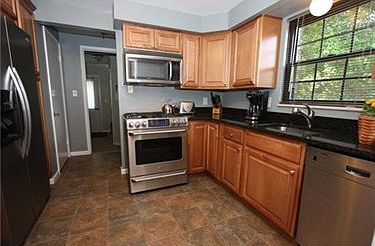 Extensive list of amenities & updates in this wonderful family home! New roof, New kitchen w/granite counter tops, maple cabinets, ceramic tile floor, stnless. appl., beautiful new baths, large master BR, fab deck w/gorgeous view of lovely, private yard! 1st flr family room could be bedroom - it has a full bath which is handicap accessible,& has private entrance. 2nd flr laundry! Basement is immense, gets good natural light, & has great potential for game room plus more! PAT bus stop in front! Must see!