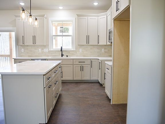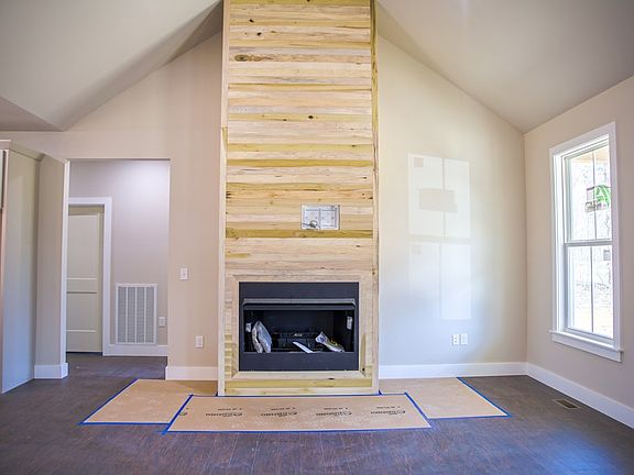 Almost complete! This exceptional home blends elegance and practicality with a thoughtfully designed kitchen featuring a natural gas range, high-end soft-close wood cabinetry, sleek stone countertops, backsplash, and a spacious prep island—ideal for cooking and entertaining. A large utility room adds convenience with a pantry closet, extra cabinetry, and a utility sink. The expansive living room boasts soaring vaulted ceilings and a striking floor-to-ceiling wood-wrapped natural gas fireplace. The luxurious master suite offers a large linen closet, a stunning floor-to-ceiling tiled shower with a built-in niche, and a dual vanity. Custom-designed closets include built-in racks and shoe cubbies for optimal storage. Impressive outdoor living includes 35-ft covered porches in the front and back. The durable exterior features premium composite siding, wood columns, elegant landscaping, French drains, full gutters, and an underground drainage system.Expertly crafted by a Certified VA Builder