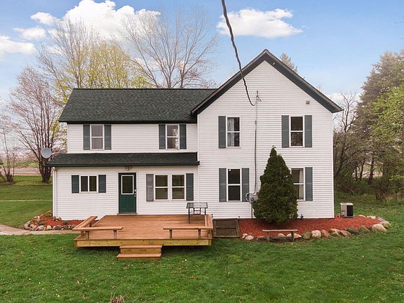 Country, Farmhouse style dream home on 7.25 acres just 10 min. from Interstate Hwy 94/Roberts! Plenty of room for large gardens or small hobby farm. Currently a 4 bedroom/ 2 bath single family home or use as an INVESTMENT duplex rental.(Home is already divided for each unit, propane, electric, 2 bed/1 bath/kitchen/laundry on each level) . Many updates include new 2 car garage 2021, LVP flooring on main level, roof 2018, well 2019, furnace 2014.