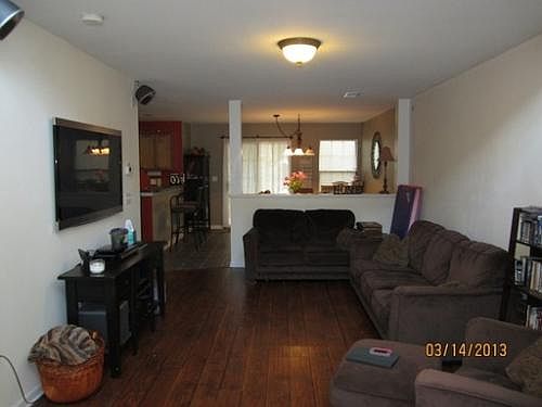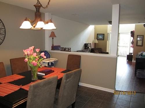 3 bedroom 3.5 bath townhouse with open loft is an end unit that is bordered by trees and natural wetlands. Laminate flooring through living room and downstairs bedroom. Kitchen overlooks dining room area with breakfast bar. 1 bedroom and 1 full bathroom located on the first floor. Master suite, 3rd bedroom and loft upstairs. Newer HVAC unit provides energy efficient heating and cooling with dual thermostats (one-upstairs and downstairs. Additional closet has been built in the loft providing additional storage. Large patio overlooks wooded area. 2 car parking pad in front of unit. Access to neighborhood pools and play ground included. One small pet may be considered with owners approval and an additional $200 pet deposit and rent increases $25 per month with a pet. No Smoking allowed.