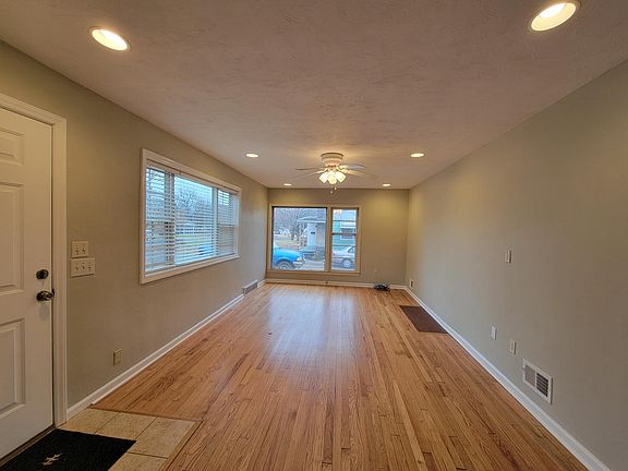 Wood floors in living and bedrooms. Updated bath with tile floor and walk in shower, partially finished basement, clean and ready to move into. 1 car attached garage, front porch, rear patio, fenced yard. Side-by-side fridge, smooth top range No smoking, no undergrads. City utilities for electric, water, sewer, and trash 12 month average was $128 per mo; Ameren gas 12 month average was $62 per month. Pets negotiable.